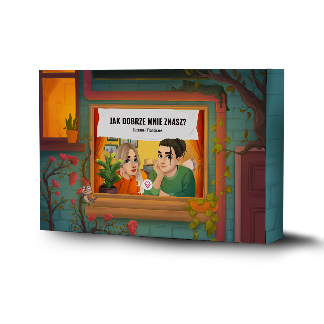 „Jak dobrze mnie znasz?” to gra planszowa dla par, która zachęca do śmiechu, szczerości i głębszej więzi – idealna dla tych, którzy chcą spędzić razem czas bez ekranu.